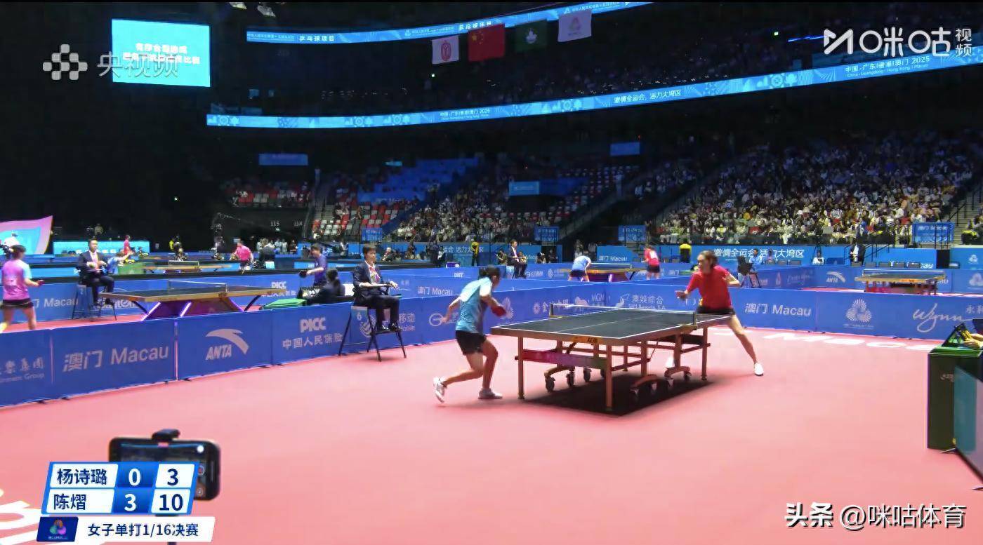 11月10日,2025全运会乒乓球女单1/16决赛,国乒新生代选手陈熠以4-0完胜杨诗璐,顺利跻身16强。